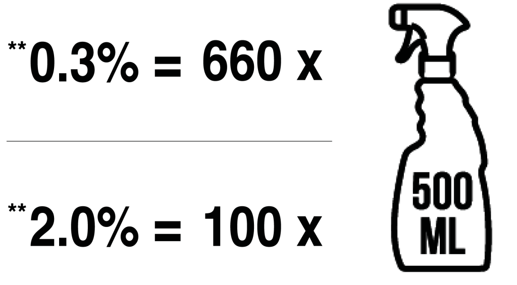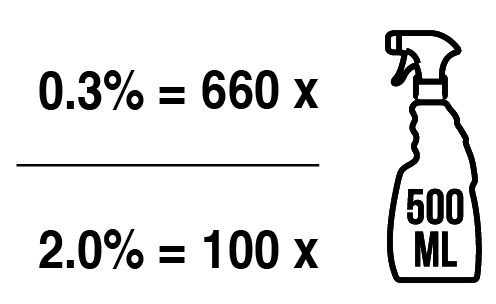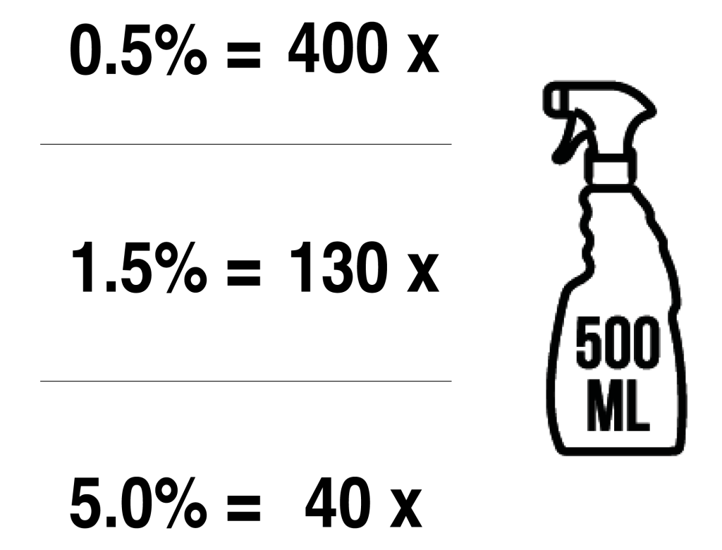 They work with 0.5% use dilutions for daily cleaning and 2% for stubborn dirt. Super concentrated cleaners do not require use of PPE at use concentration.